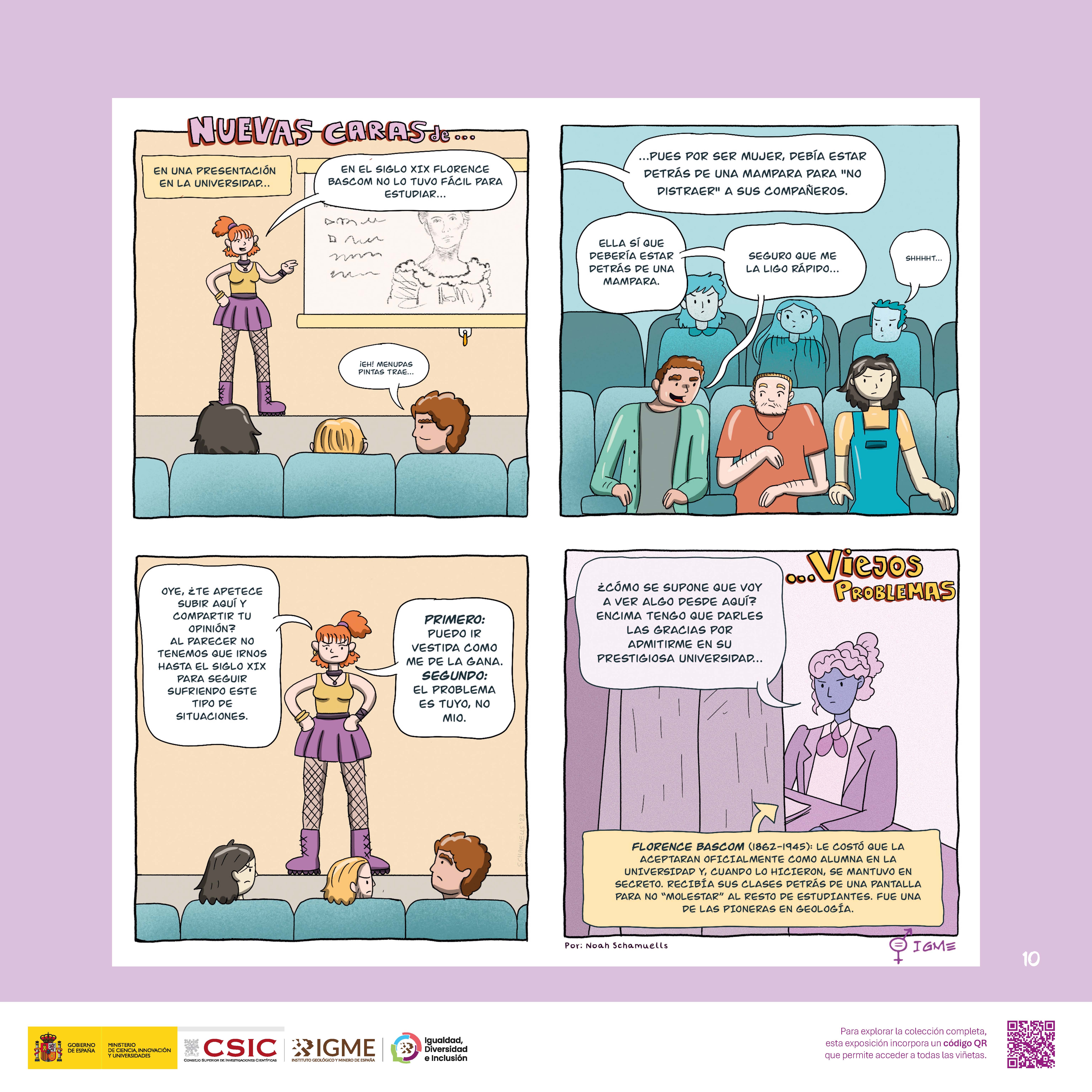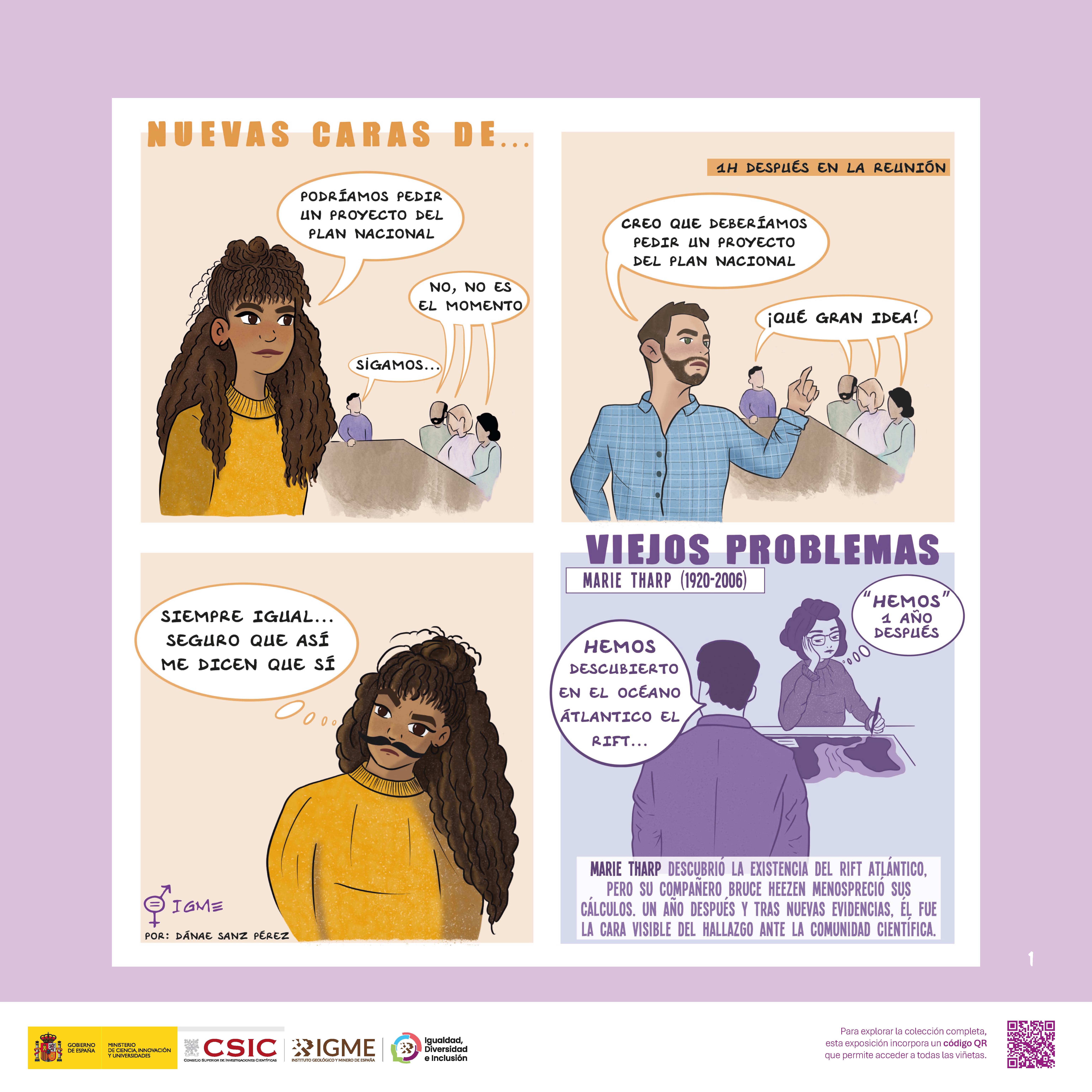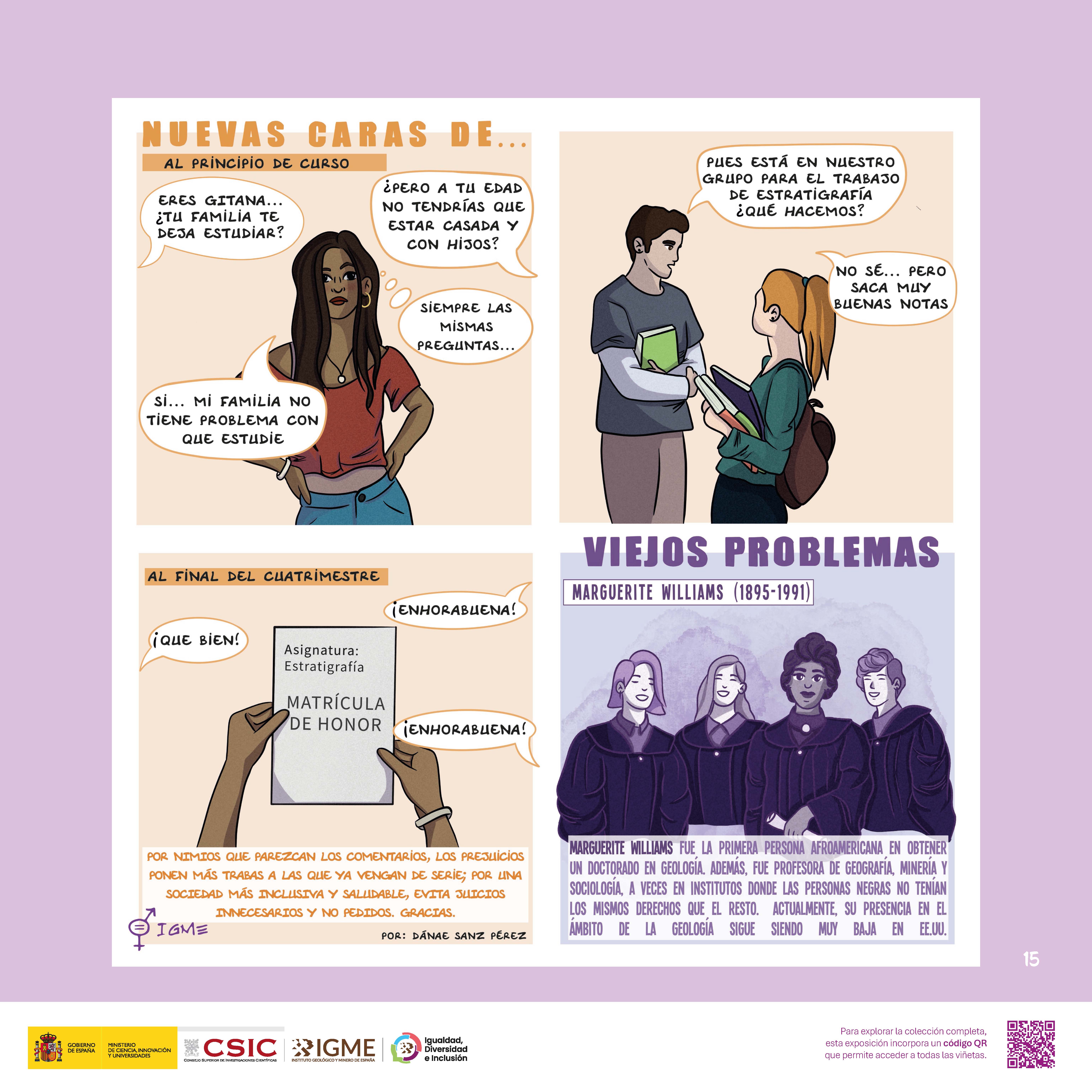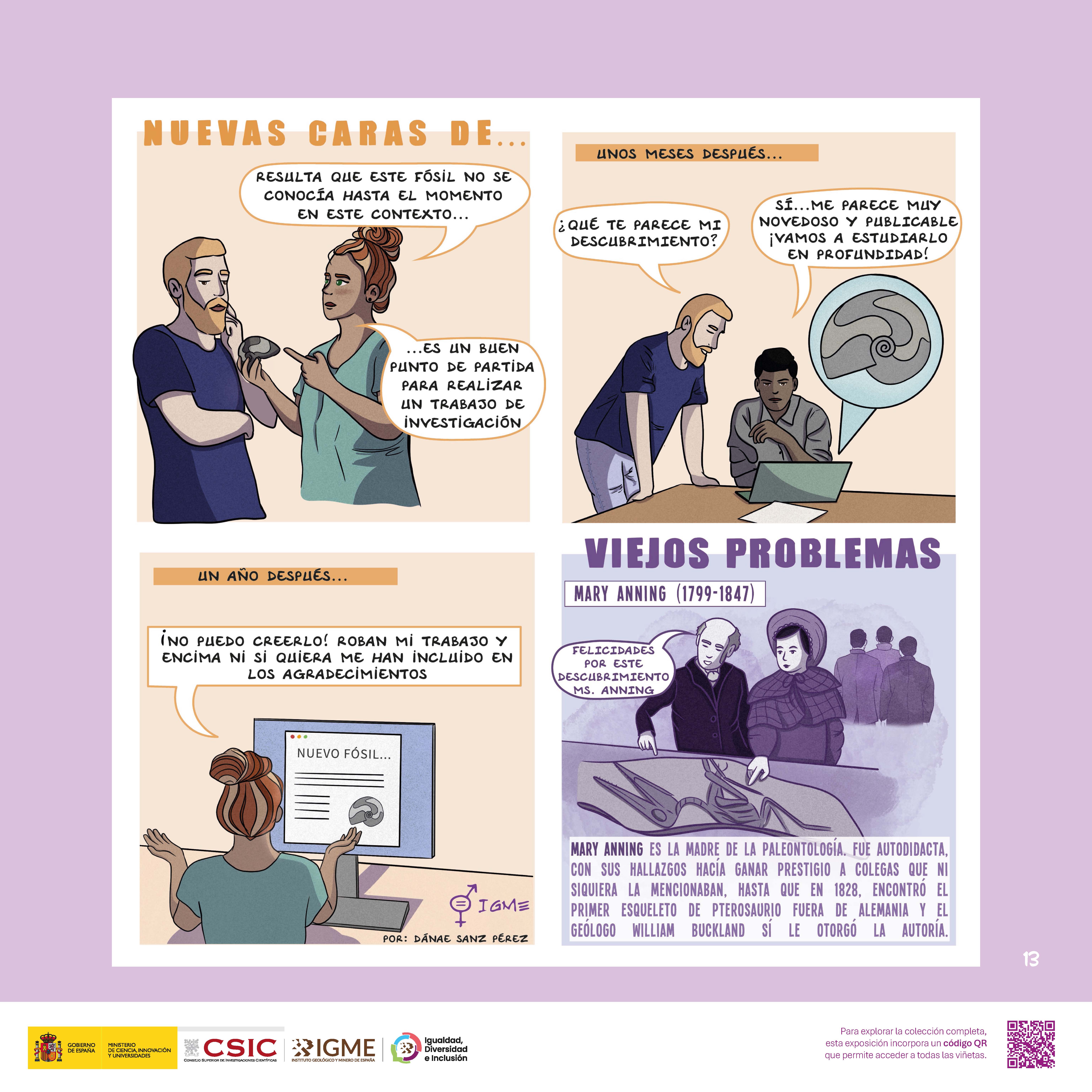 “Nuevas caras de viejos problemas” es una exposición en formato cómic que invita a reflexionar sobre la igualdad de género a la vez que descubres a 16 pioneras en geología de una manera cercana y visual.