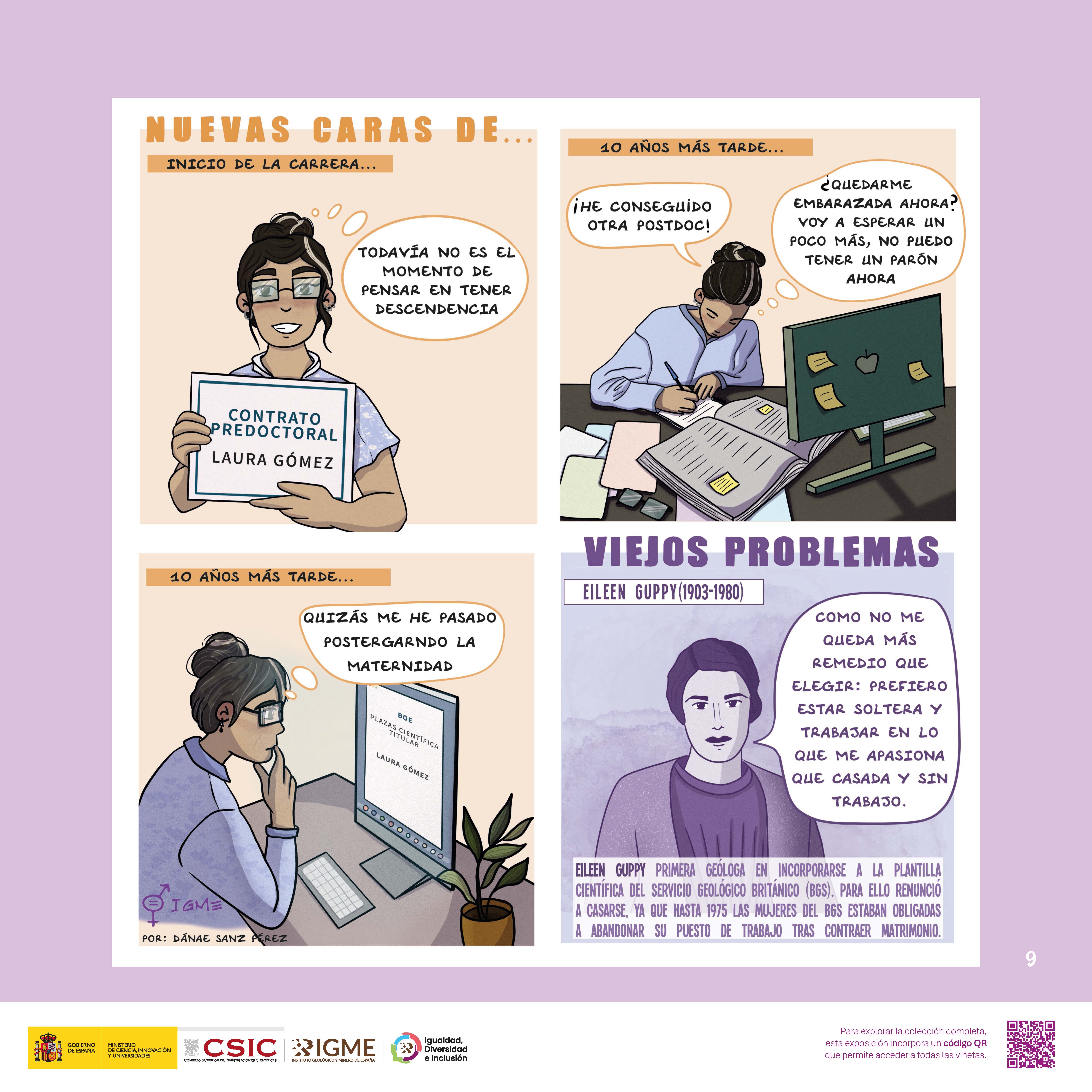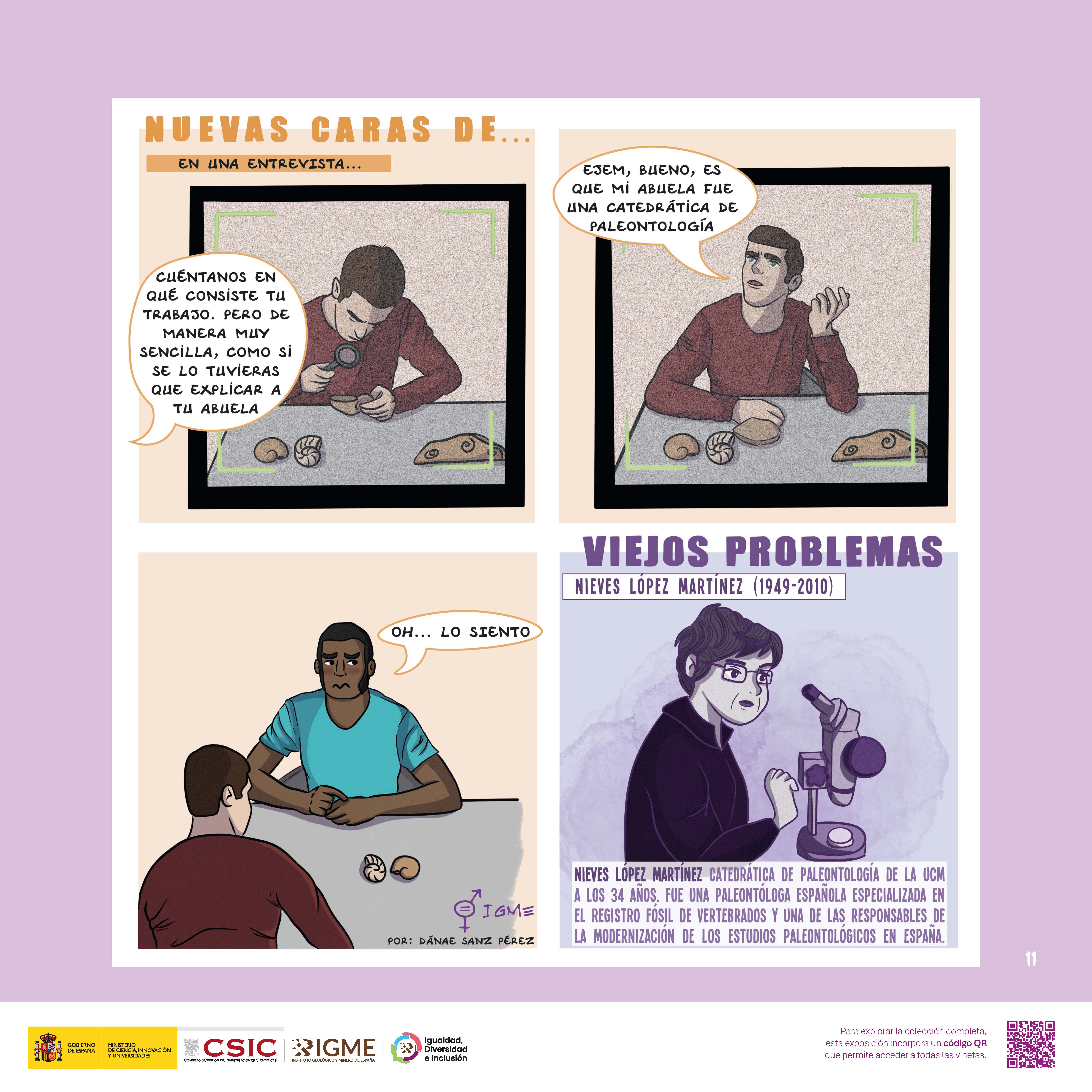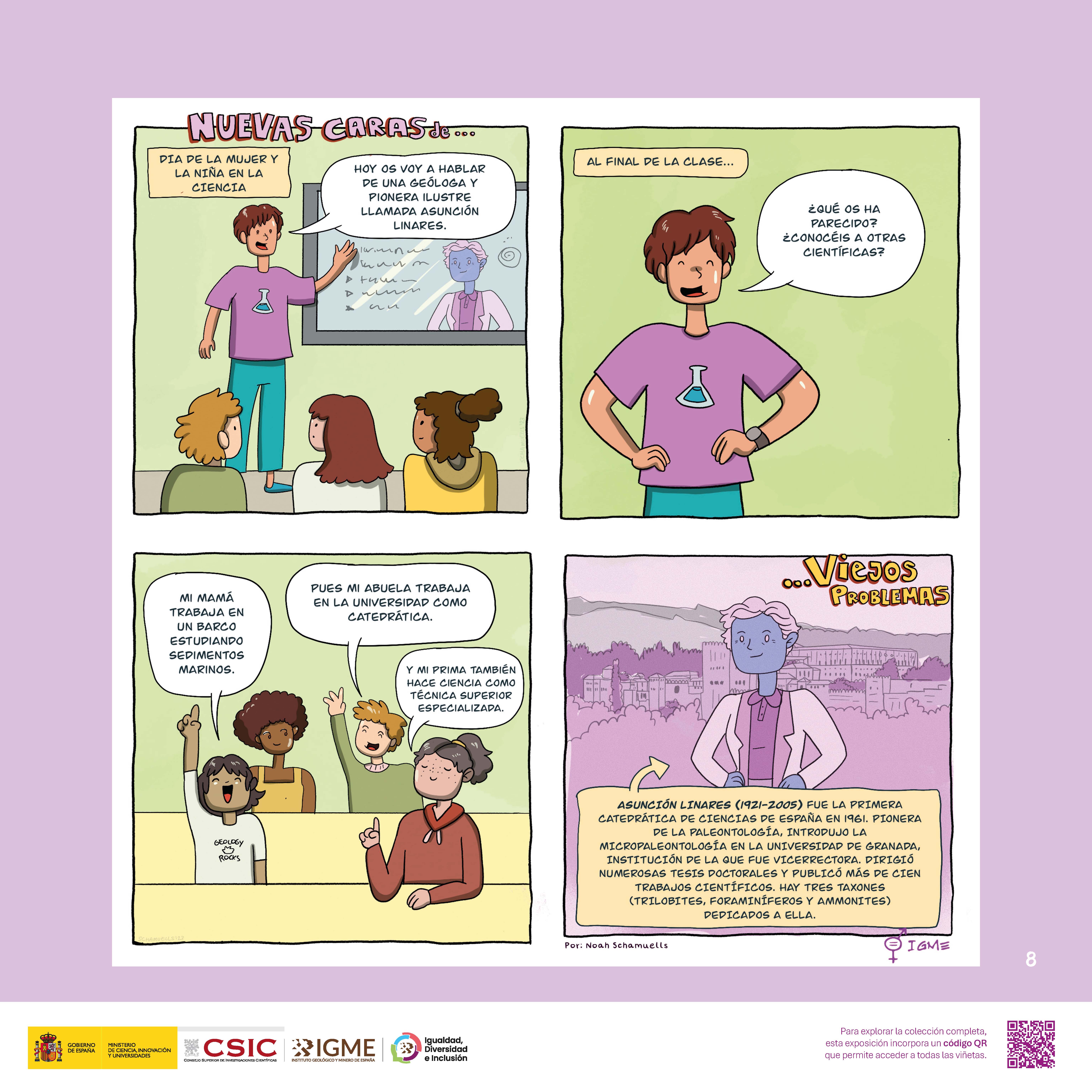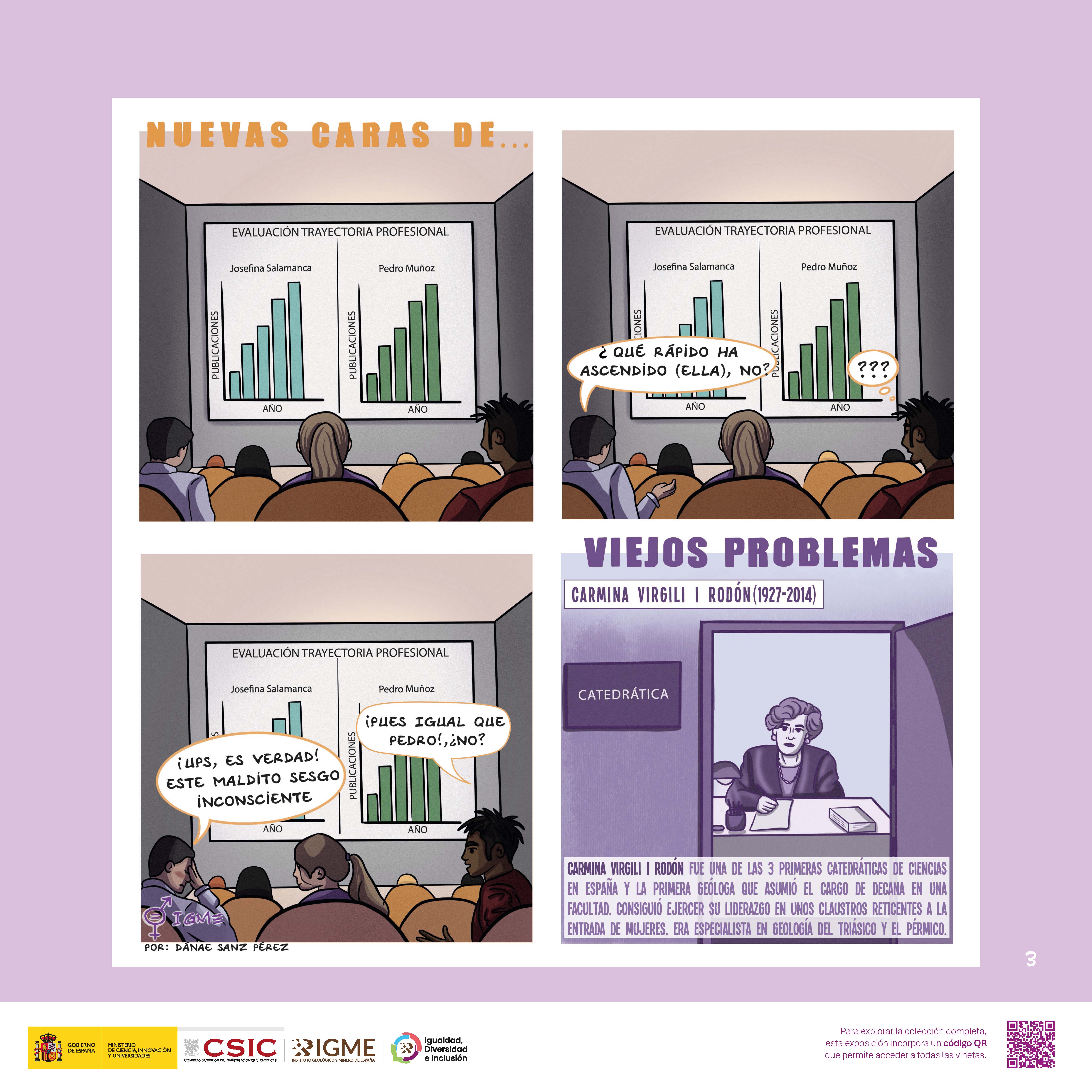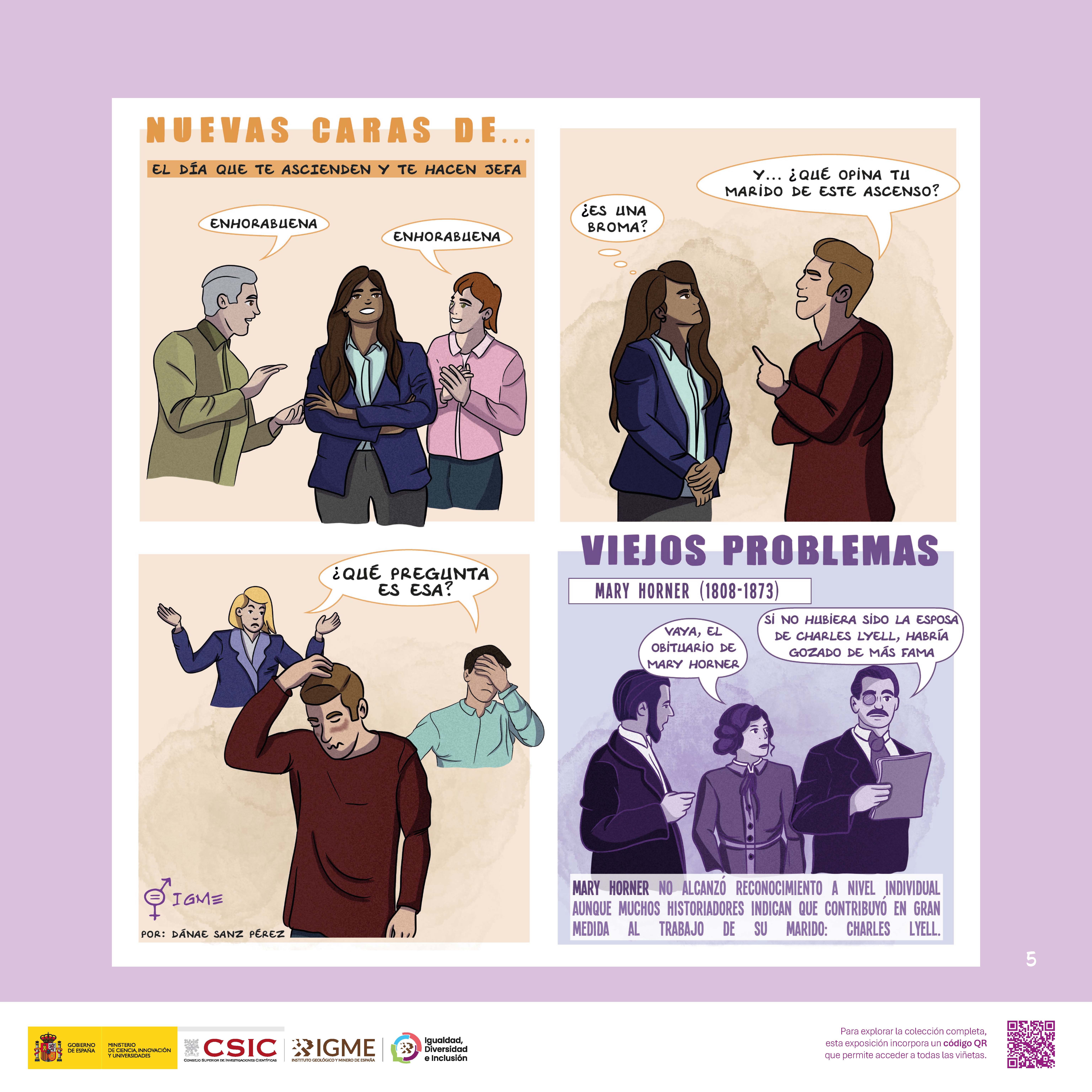 “Nuevas caras de viejos problemas” es una exposición en formato cómic que invita a reflexionar sobre la igualdad de género a la vez que descubres a 16 pioneras en geología de una manera cercana y visual.
