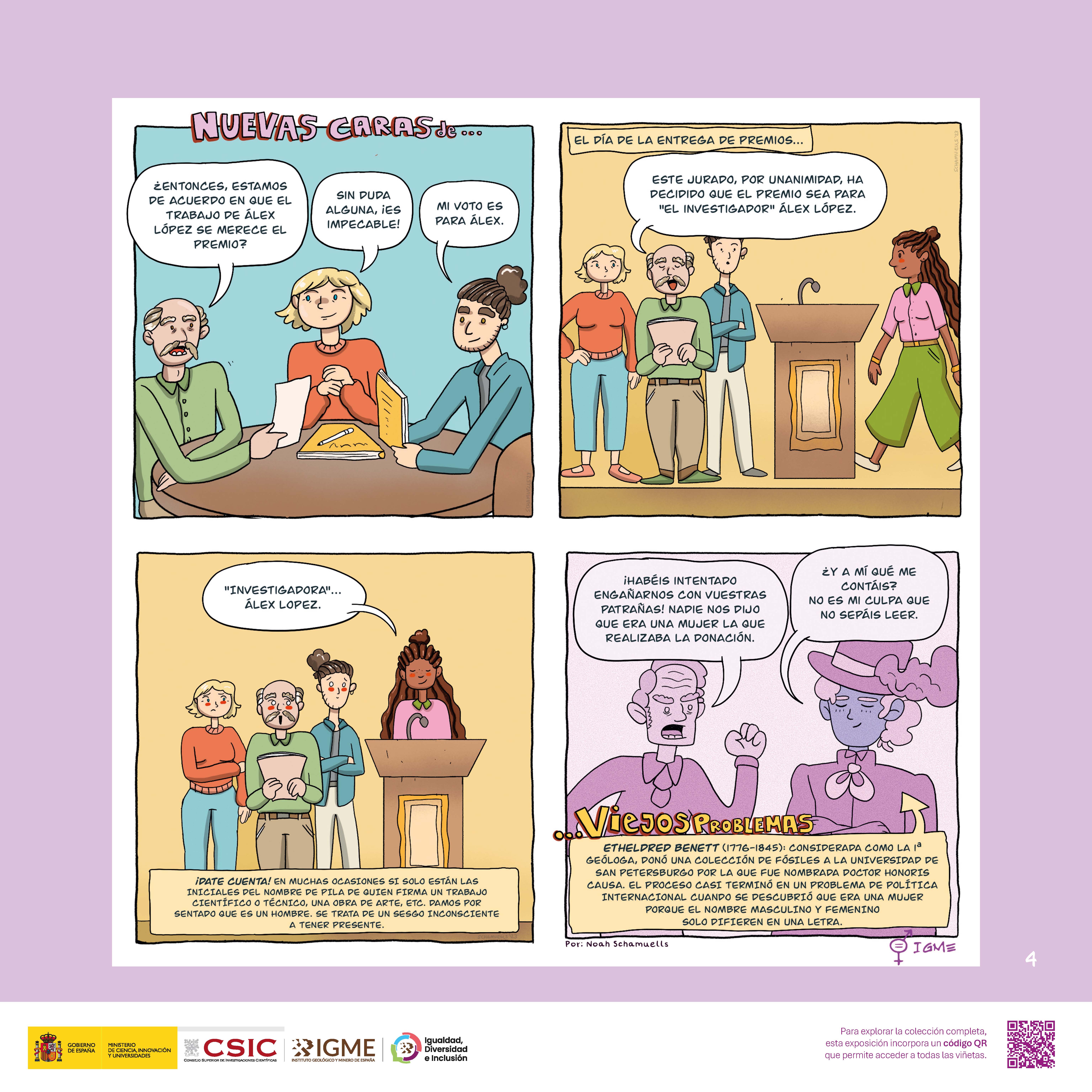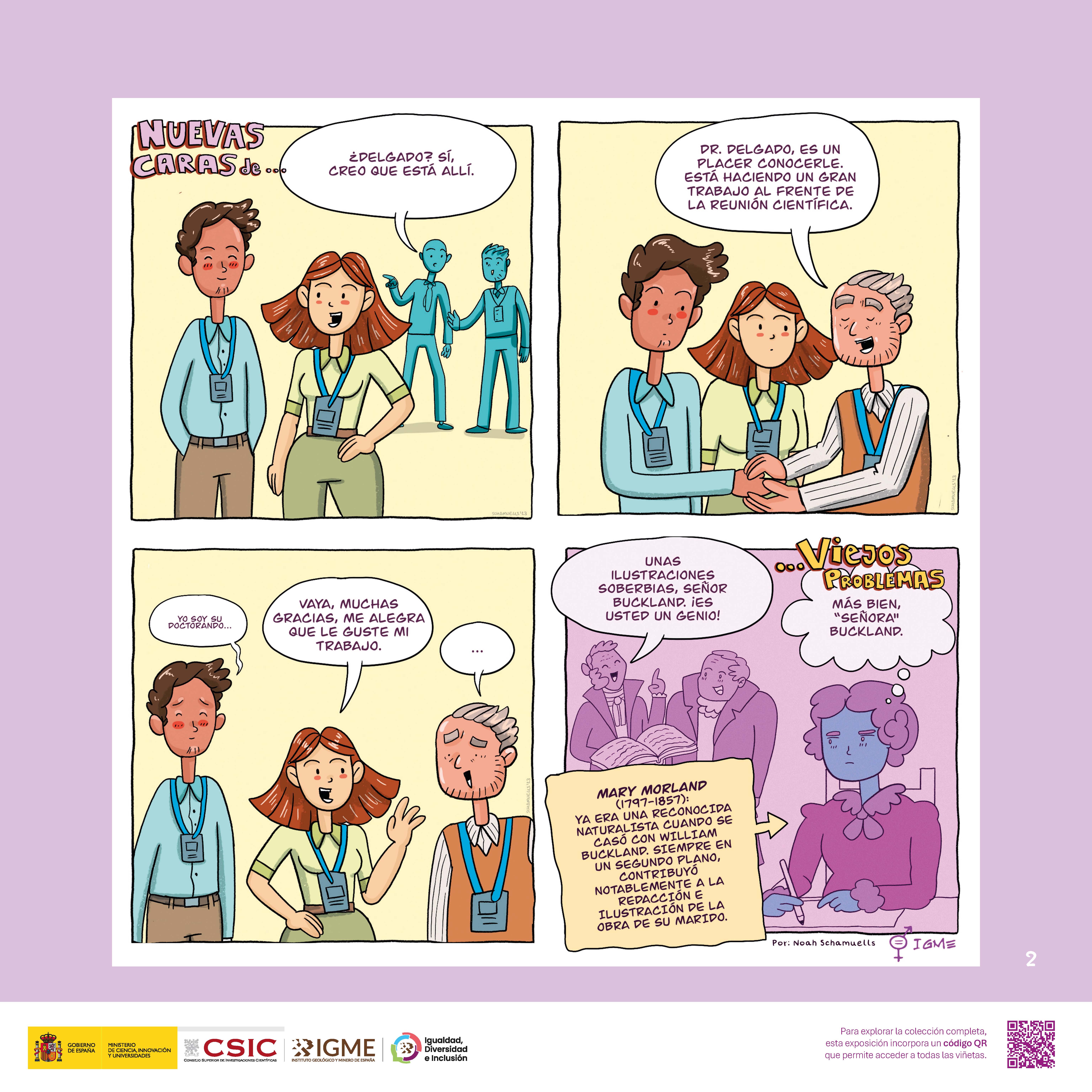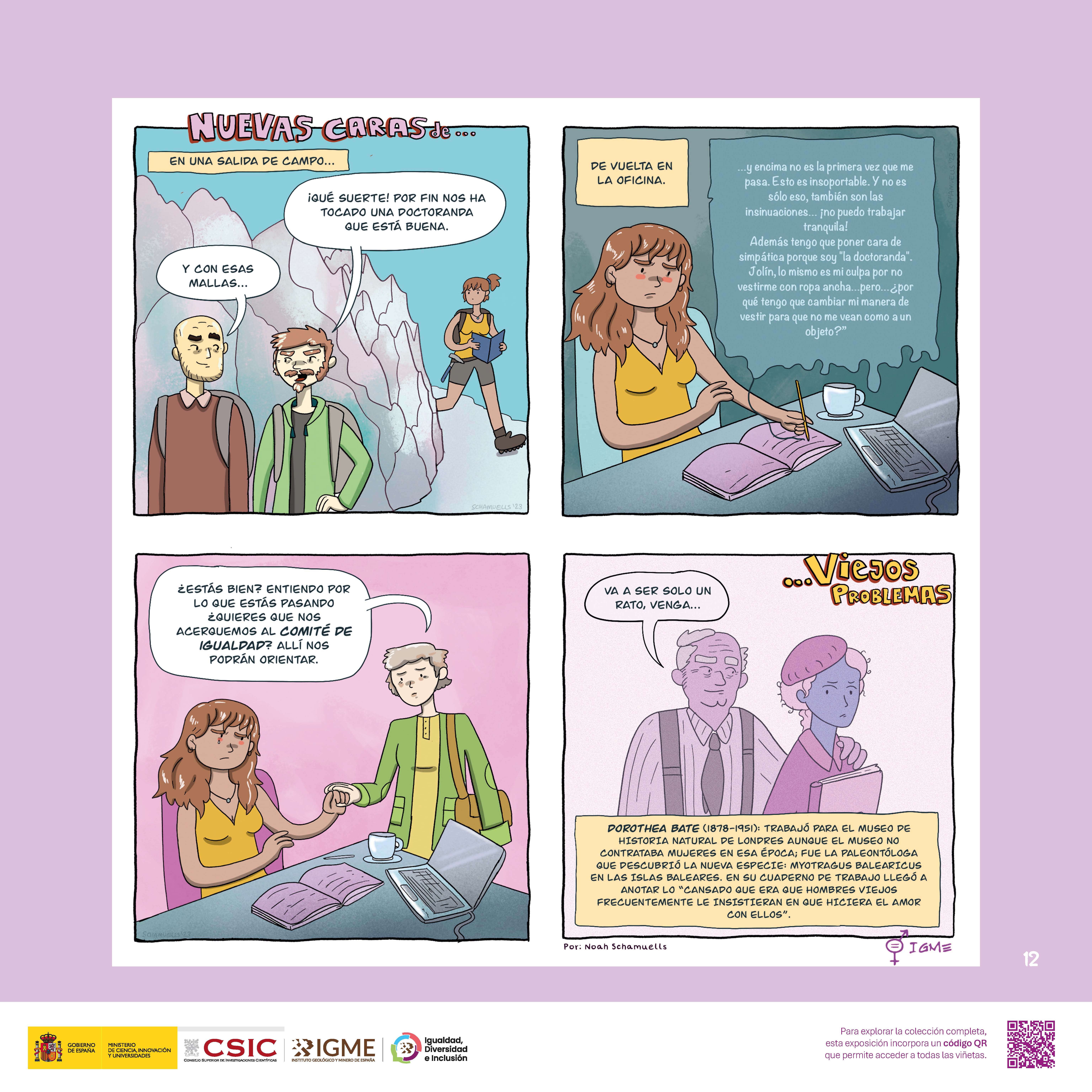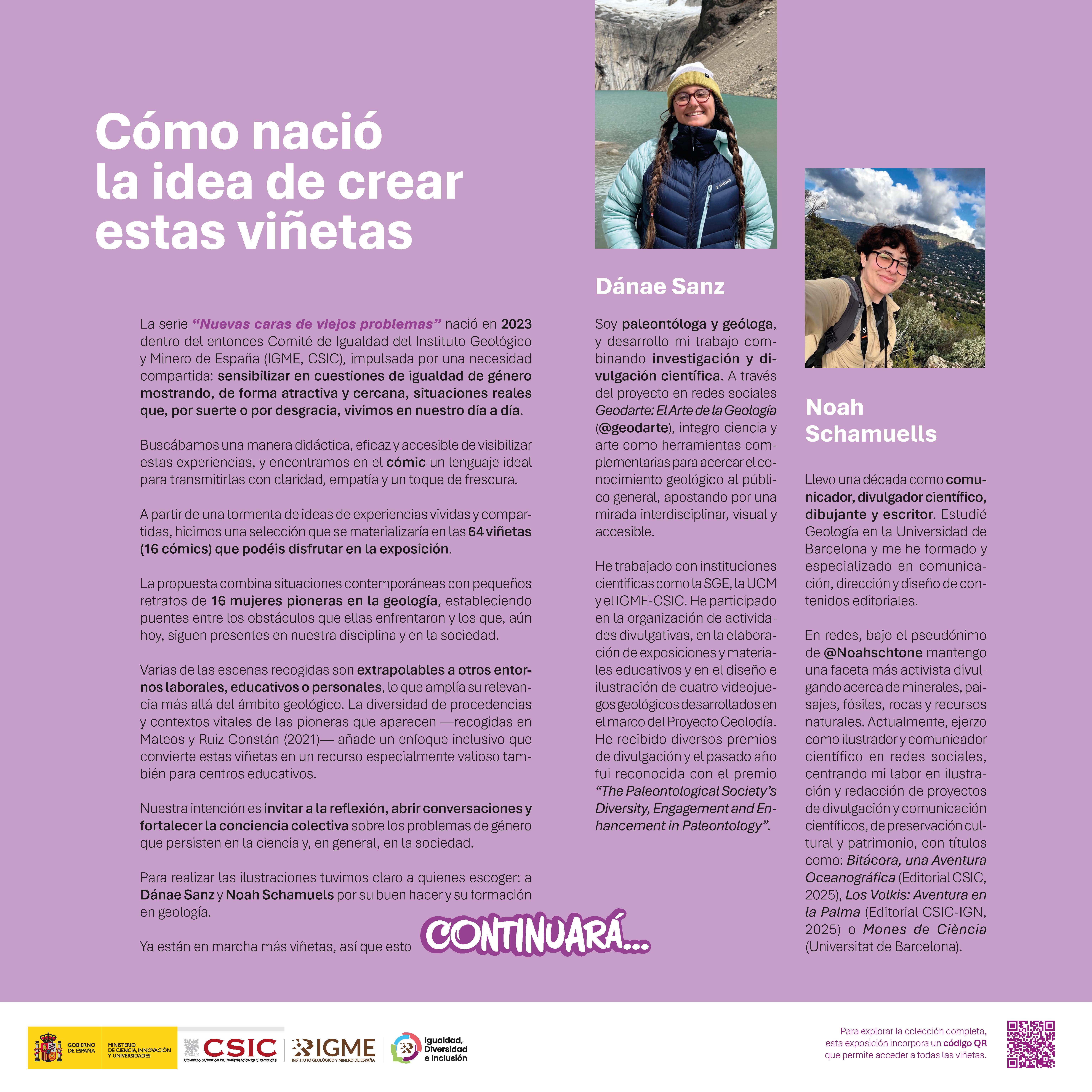 “Nuevas caras de viejos problemas” es una exposición en formato cómic que invita a reflexionar sobre la igualdad de género a la vez que descubres a 16 pioneras en geología de una manera cercana y visual.