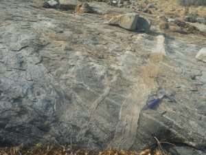 Complejo ígneo máfico-félsico con deformación ductil cortado por un haz de diques félsicos tardios